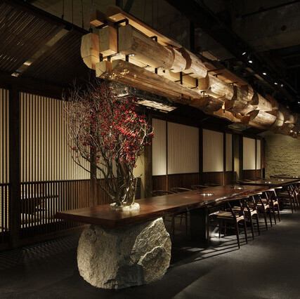 店内には、最大30名様までご利用いただける広々としたダイニングテーブル席をご用意しております。オープンキッチンに面したテーブル席では、ダイナミックな調理風景を眺めながらお食事をお楽しみいただけます◎ご宴会からプライベートな会食まで、お客様のTPOに合わせて最適な空間をご提供いたします。