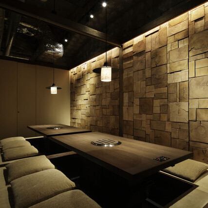 【完全個室】周りを気にせず、ゆったりと焼肉を楽しめる完全個室をご用意しております。足を伸ばしてくつろぎながら、大切な方との会話と上質な焼肉をご堪能ください。記念日やデート、ビジネスの接待など、プライベートな時間を重視したいシーンに最適◎心安らぐ空間で、至福のひとときをお過ごしください♪